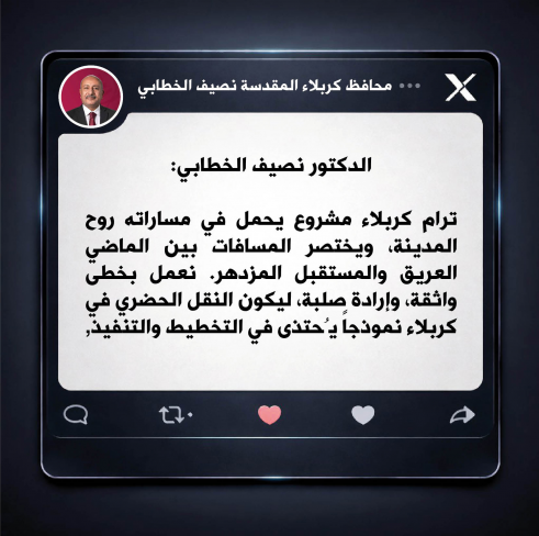 المنصة الرسمية لمحافظ كربلاء المقدسة المهندس نصيف جاسم الخطابي على منصة ( x )المنصة الرسمية لمحافظ كربلاء المقدسة المهندس نصيف جاسم الخطابي على منصة ( x ) الاخبار المحلية