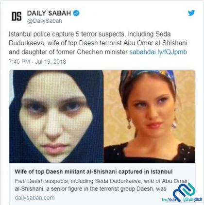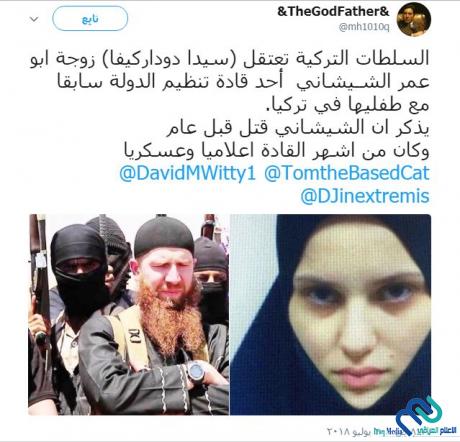 قالت إنها تعود لزوجة وزير الحرب السابق لتنظيم داعش المدعو أبو عمر الشيشاني.