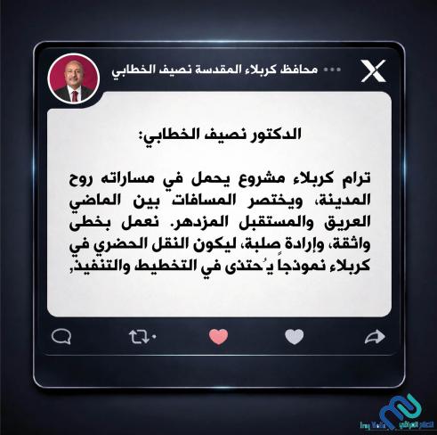 الدكتور نصيف الخطابي: ترام كربلاء مشروع يحمل في مساراته روح